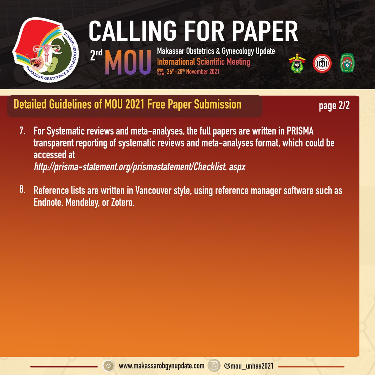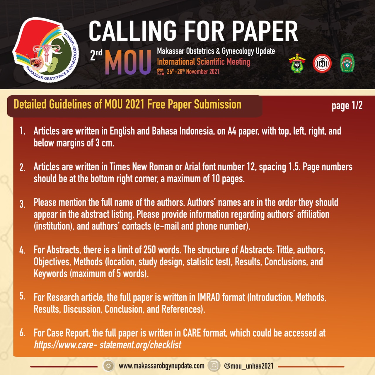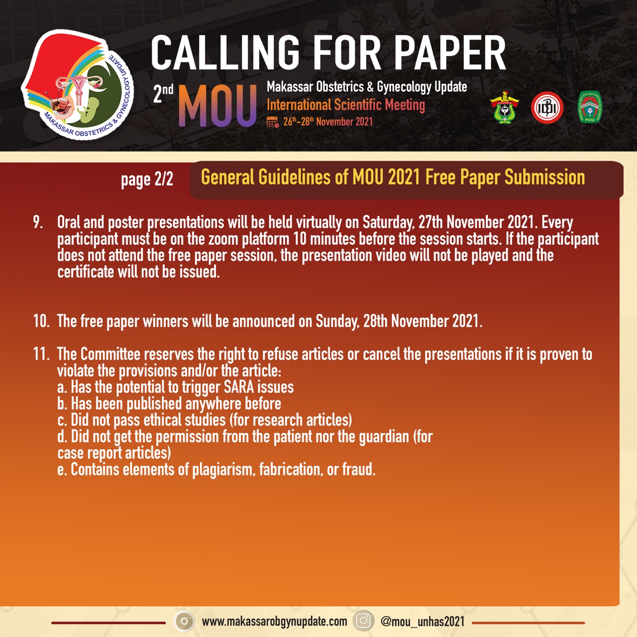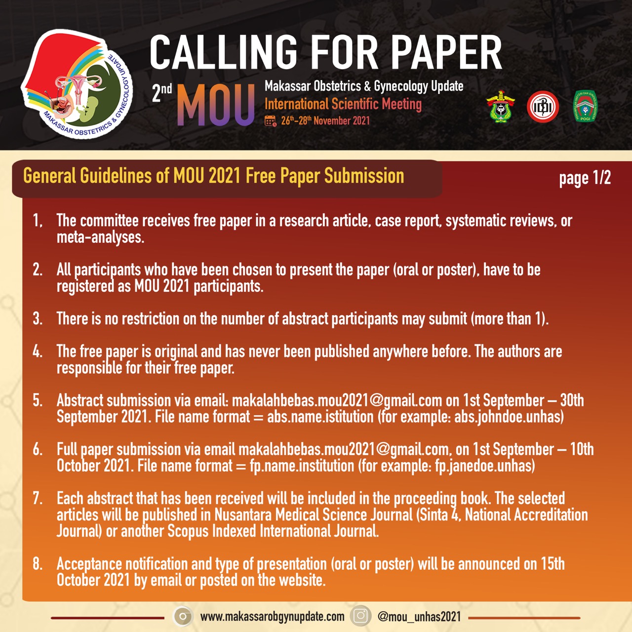 Assalamu’alaikum Warrahmatullahiwabarakatuh Om Swastiastu Salam sejahtera bagi kita semua, Puji dan syukur kita panjatkan kepada Tuhan Yang Maha Esa atas perkenanNya, kita semua diberikan kekuatan dan kesehatan hingga saat ini. Pandemi yang berkepanjangan ini telah membuat perubahan-perubahan dalam tatanan pelayanan kesehatan. Adaptasi terus dilakukan agar tetap dapat memberikan yang terbaik bagi masyarakat. Departemen Obstetri dan Ginekologi Fakultas Kedokteran Universitas Hasanuddin, bekerjasama dengan Perhimpunan Obstetri dan Ginekologi Indonesia (POGI) Cabang Makassar, menyelenggarakan “Makassar Obstetrics and Gynecology Updates” yang kedua, dengan mengusung tema : Mengatasi Tantangan Pelayanan Obstetri dan Ginekologi di Masa Pandemi : Penyegaran Keilmuan, Penguatan Keterampilan dan Kolaborasi, yang dilaksanakan pada tanggal 26-28 November 2021. Seluruh rangkaian acara dilaksanakan secara virtual sehingga dapat menjangkau peserta di seluruh Indonesia. Kualitas layanan kesehatan yang tetap terstandar, diharapkan dapat menjadi hasil luaran dari pertemuan ini, sehingga masa pandemi tidak menjadi halangan untuk memberikan layanan obstetri dan ginekologi sesuai konsep-konsep berbasis bukti ilmiah terkini. Kami mengucapkan selamat berjumpa kepada para peserta, dan terutama para alumni Departemen Obstetri dan Ginekologi Fakultas Kedokteran Universitas Hasanuddin yang mengabdi di seluruh penjuru nusantara. Selamat menikmati acara ilmiah sembari bertemu-kangen dengan teman-teman seperjuangan dalam masa pendidikan.